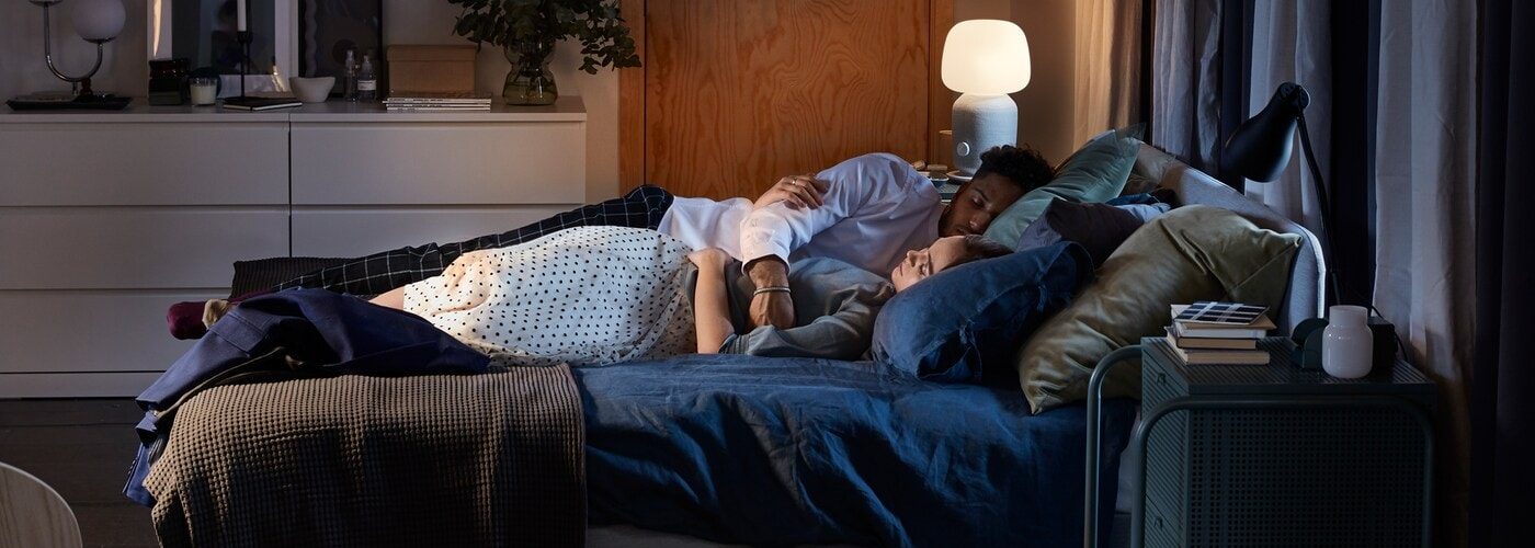 Para evitar que la habitación se vea demasiado oscura, es importante equilibrarla con elementos claros. La ropa de cama blanca, los cojines claros y las cortinas de colores claros ayudarán a equilibrar una pared oscura.